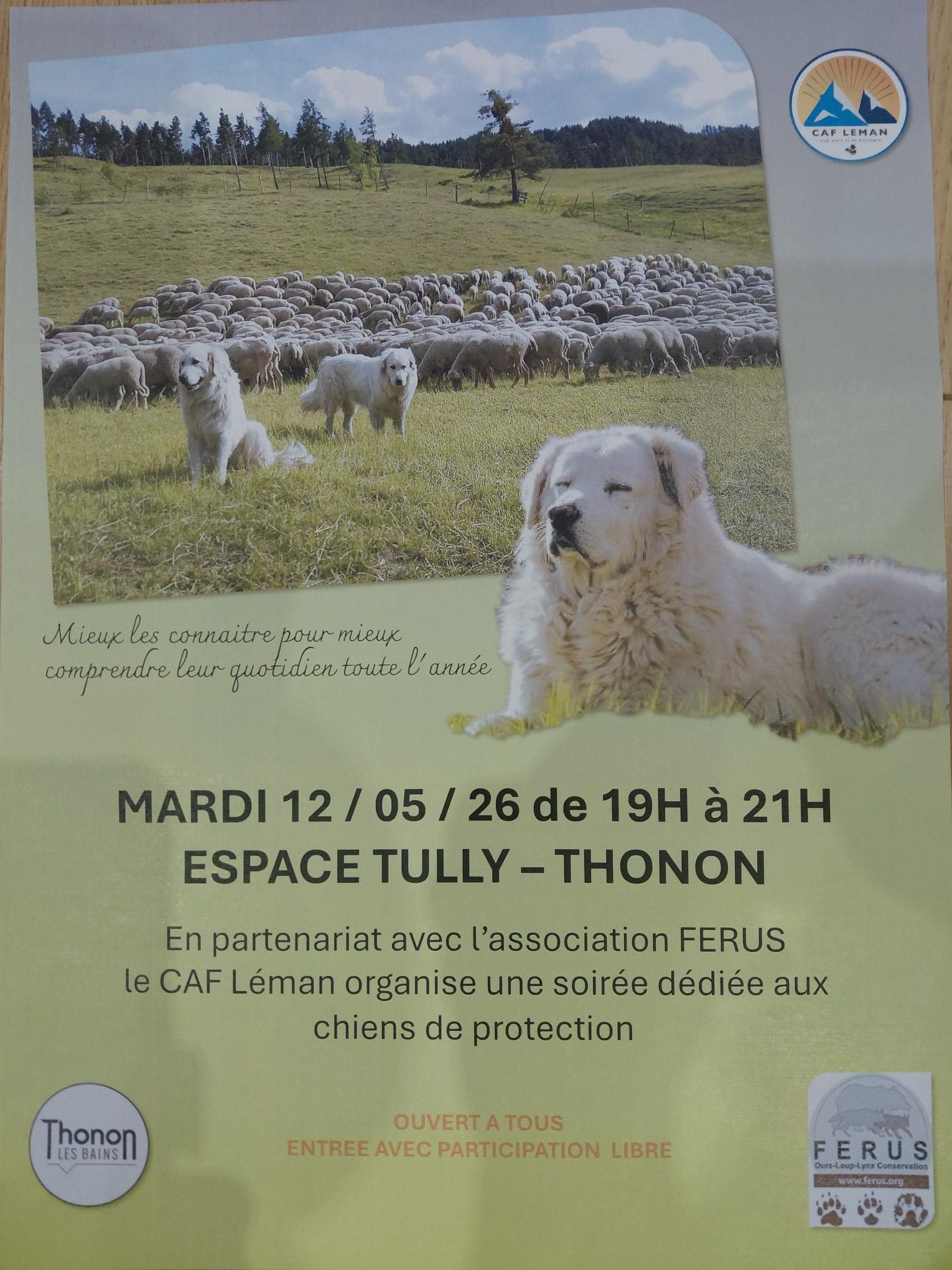 Après le succès de la soirée consacrée aux loups et lynx en décembre dernier, le CAF Léman organise à nouveau avec l’association FERUS une soirée : elle sera dédiée cette fois-ci aux chiens de protection.