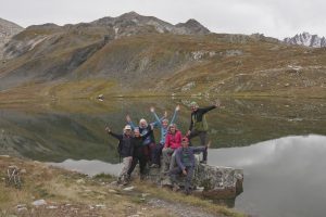 Le Col des Chevaux (2714m) se dévoile alors dans toute sa splendeur : sommets enneigés au loin, pentes flamboyantes de rouge grâce aux myrtilliers d’automne. Nous poursuivons vers le Col du Bastillon, d’où l’on peut admirer toute la beauté des Lacs de Fenêtre. Une pause pique-nique au bord du lac nous redonne de l’énergie avant d’affronter l’objectif du jour : la Pointe du Drone (2949m).