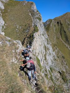 La montée est exigeante : câbles à saisir, passages à quatre pattes, chaque pas demande une attention totale. Enfin, nous atteignons le sommet, et c’est une joie immense, récompense méritée de nos efforts partagés.