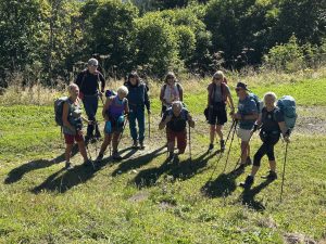 En ce dimanche de rentrée, trois courageuses randonneuses se sont jointes à René pour une magnifique randonnée en boucle. Parmi elles, notre doyenne, toujours aussi agile et à l’aise sur les sentiers, est venue nous encourager à persévérer dans nos activités de montagne.
