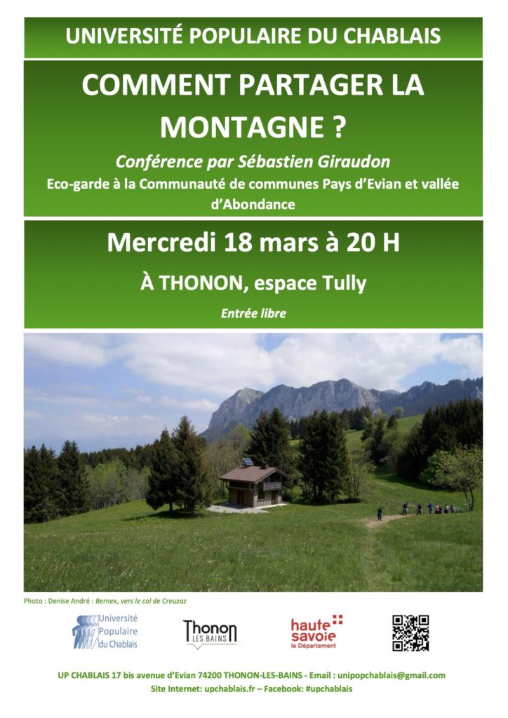 Conférence 18 Mars : Comment partager la montagne Mercredi 18 Mars 20h00 Espace Tully à Thonon Par Sébastien Giraudion