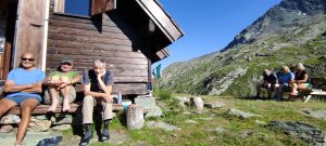 C’est par une journée ensoleillée que nous roulions à 2 voitures en direction de la Vanoise pour entreprendre le Dôme de la Sache 3588 m au départ du hameau de la Gurraz à 1600 m. Avant notre première marche d’approche nous cassons la croûte dans un magnifique cadre qui se distingue au nord par l’envers du massif du Mont-Blanc et au sud par le tableau de la Grande Sassière.