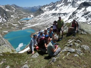 Le trek de 5 jours se fit sous une grosse chaleur qui ne nous empêcha pas de marcher en chantant et , grâce à certaines petites variantes nous prîmes de la hauteur pour nous rafraîchir. MENTEUR ! Ah bon. Ceci dit nous avons découvert de superbes panoramas, et rencontré des adeptes du VTT d’altitude. Heureusement, nos soirées en refuge nous ont permis de bien récupérer afin de partir de bon pied le lendemain matin jusqu’au 5éme jour. Parlons en de ce 5ème jour. Tout aller bien quand, à la dernière descente de col, nous vîmes monter, de la vallée, des nuages plus que menaçants. Décision fut prise de se restaurer un peu plus haut que les voitures, et de les rejoindre après. Top chrono, nous ouvrons les coffres des véhicules, changeons de chaussures, intégrons les habitacles, démarrons et là, orage ô désespoir, nous fûmes bloqués tout le dimanche, ce qui nous permis de visiter un château, un musée local, forts intéressants. Deux compagnons nous quittèrent, c’est à 7 que nous avons continué l’aventure. 5 jours en étoile avec des ascensions reportées pour cause de neige, glissement de terrain. Fin du récit, plus de place pour écrire et c’est dommage. Il y a tant à dire sur cette région, n’hésite pas et va la découvrir.